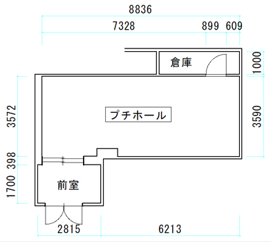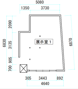 床面積 : 約 27u 天井高 : 2.84〜4.0m 壁面長 : 約 14m |