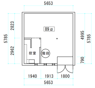 床面積 : 約 27u 天井高 : 2.84〜4.0m 壁面長 : 約 14m |